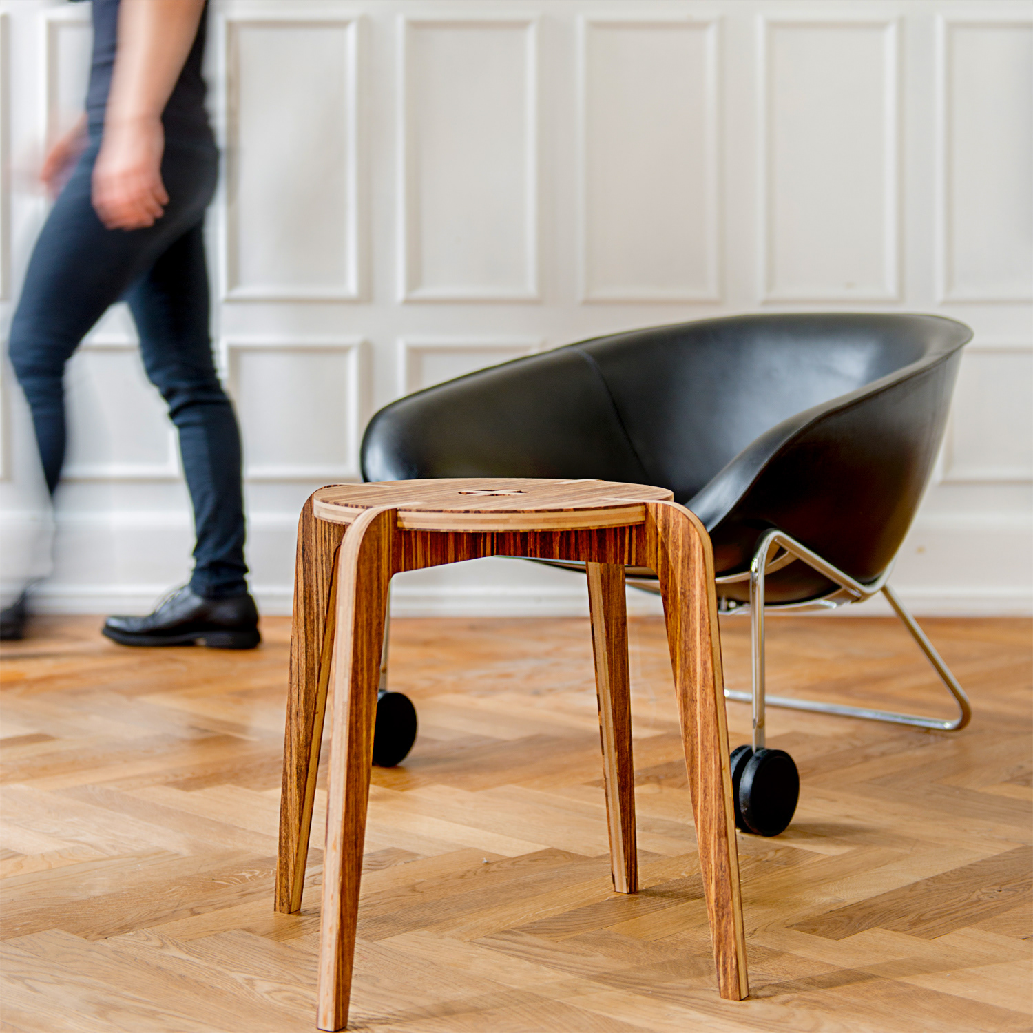 Multipurpose funktion og bæredygtigt design i bambus, samlet i tre stykker uden beslag, i en skulpturel form. Mine egne benspænd har været; bæredygtig materialevalg – bambus. Bæredygtig pleje med bivoks. Grundtanken er tidløs, æstetik i form, materiale og funktion – der taler ind i de Skandinaviske traditioner, for os, lige nu og til de kommende generationer. Æstetisk kompromisløshed – i form af synlige samlinger og krav til møblet er smukt fra alle vinkler. Multifunktionelt møbel – til at sidde på, i en snæver vending i entréen eller når der er mange samlet, til kaffekoppen, til kunstbøgerne, til retrolampen eller som ekstra sidebord ved sengen – eller til hæderspladsen fordi du bare har lyst til at se på Frank. Og har du flere kan Frank selvfølgelig stables. Dedikeret til min storebror Frank, som blev dræbt alt for tidligt i en trafikulykke bare 19 år gammel.